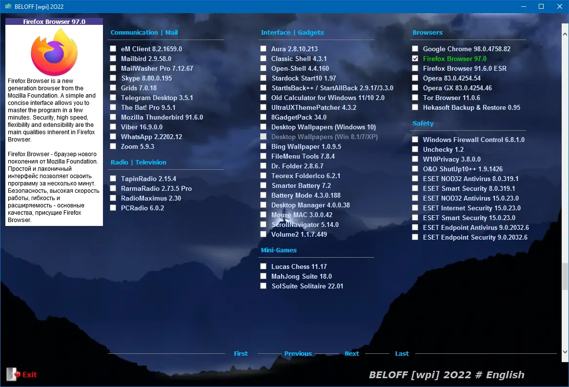 BELOFF — универсальный сборник программ с автоматической установкой через WPI и MInstAll, включающий широкий спектр софта для работы, развлечений и обслуживания системы. Сборка поддерживает BIOS и UEFI, содержит портативные версии приложений, драйверы и инструменты для восстановления системы, что делает её незаменимой при настройке ПК.