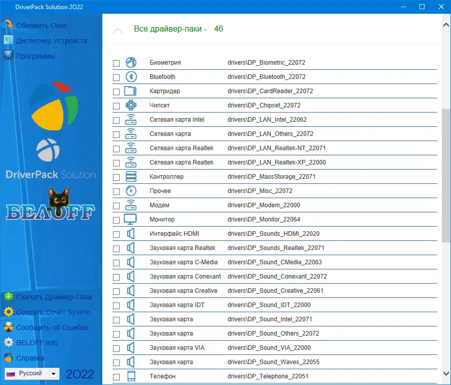 BELOFF — это универсальный сборник программ для автоматической установки драйверов на компьютеры и ноутбуки под управлением Windows x86-x64. В состав входят актуальные инструменты для поиска, обновления и настройки драйверов, а также диагностические и сервисные утилиты. Решение подходит как для новичков, так и для опытных пользователей, стремящихся быстро настроить систему после чистой установки ОС.