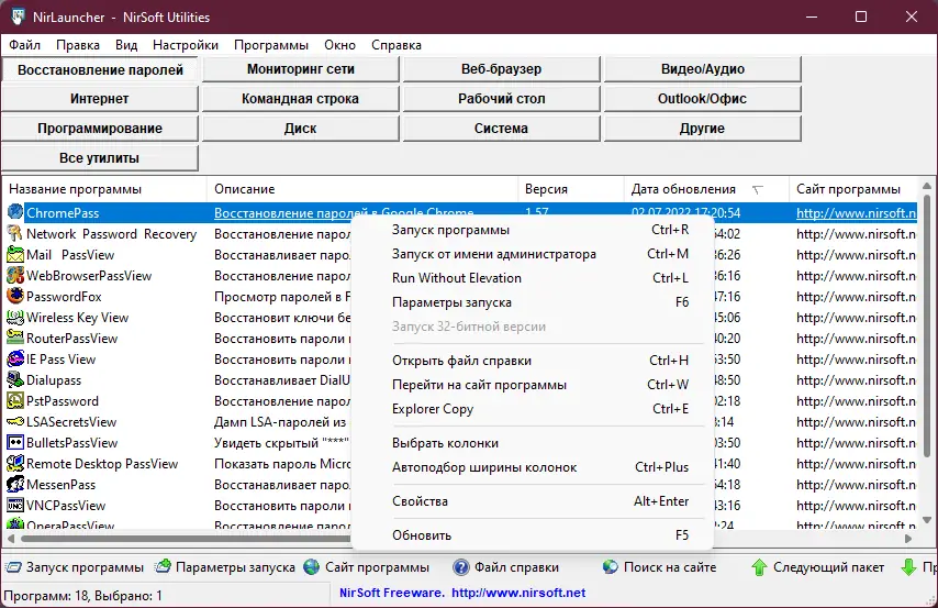 NirLauncher представляет собой универсальный набор утилит, разработанных командой NirSoft, собранных в единую оболочку для удобного доступа. Каждая из программ в пакете решает узкоспециализированную задачу — от извлечения сохранённых паролей в браузерах до анализа сетевых подключений и диагностики аппаратных компонентов. Все инструменты являются портативными, не оставляют следов в системе и не требуют прав администратора для базовых операций.
