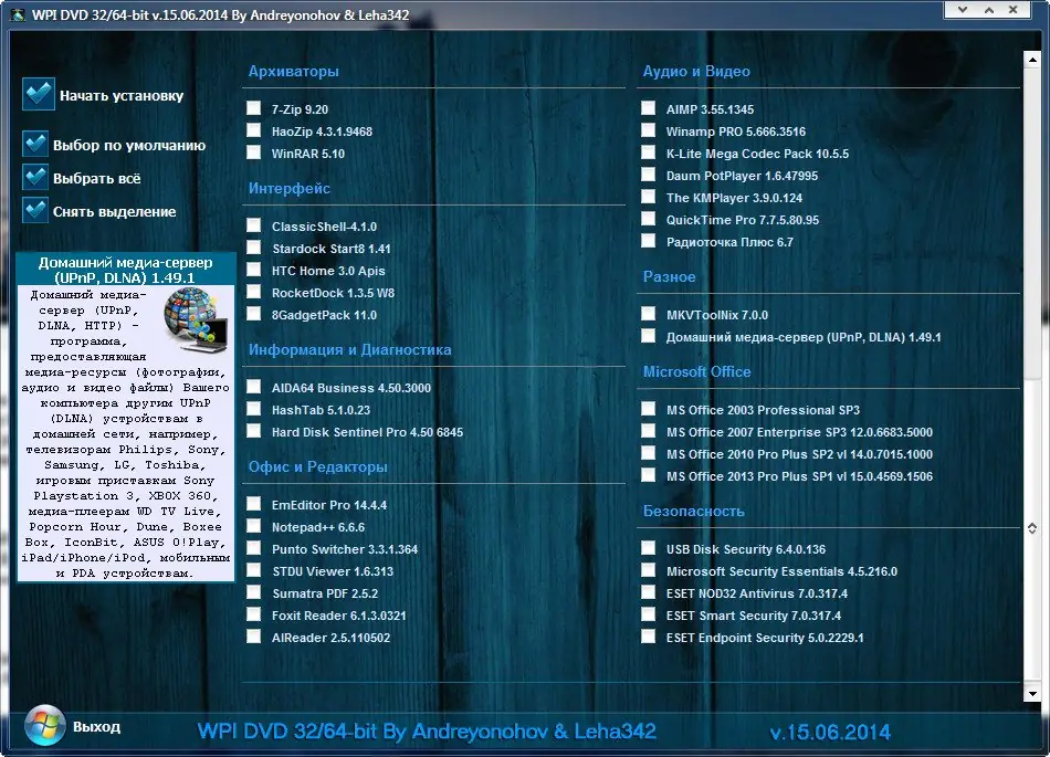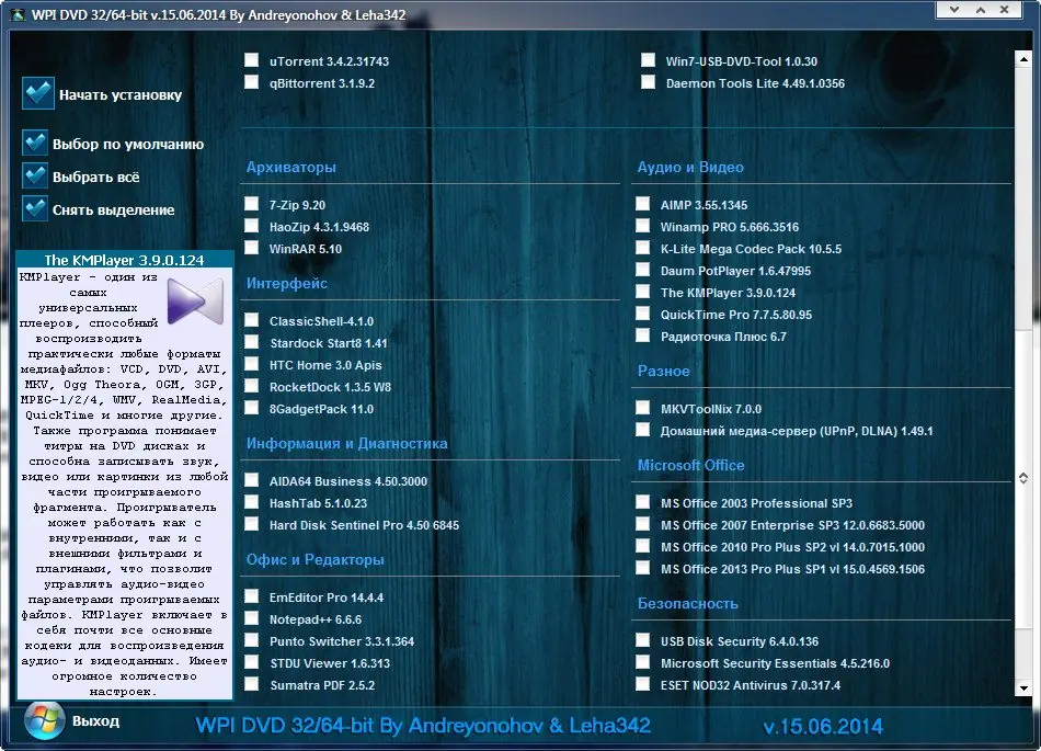 WPI DVD — это комплексное решение для пользователей, которым необходимо быстро подготовить компьютер к работе после переустановки Windows. Сборка включает тщательно отобранные программы из разных категорий: от офисных пакетов и браузеров до утилит для обслуживания системы и мультимедиа. Каждая программа доступна в актуальной на момент выпуска версии, что обеспечивает стабильность и совместимость. Интерфейс организован в виде интуитивно понятного менеджера установки с визуальной навигацией по категориям.