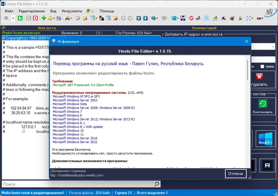 Описание Hosts File Editor+