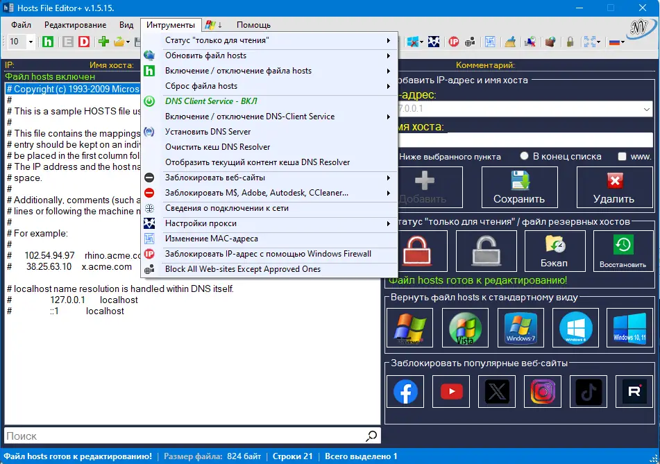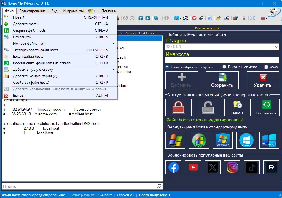 Как пользоваться Hosts File Editor+